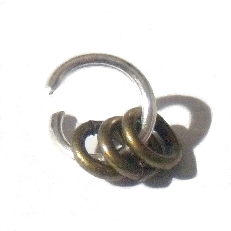 L’exemple présenté ici a été réalisé avec des anneaux argentés de 8 mm et des anneaux couleur bronze de 5 mm. Libre à vous, bien entendu, de choisir d’autres couleurs et tailles. Par contre nous conseillons des anneaux d’une section minimale de 1 mm pour une bonne résistance de la chaîne.